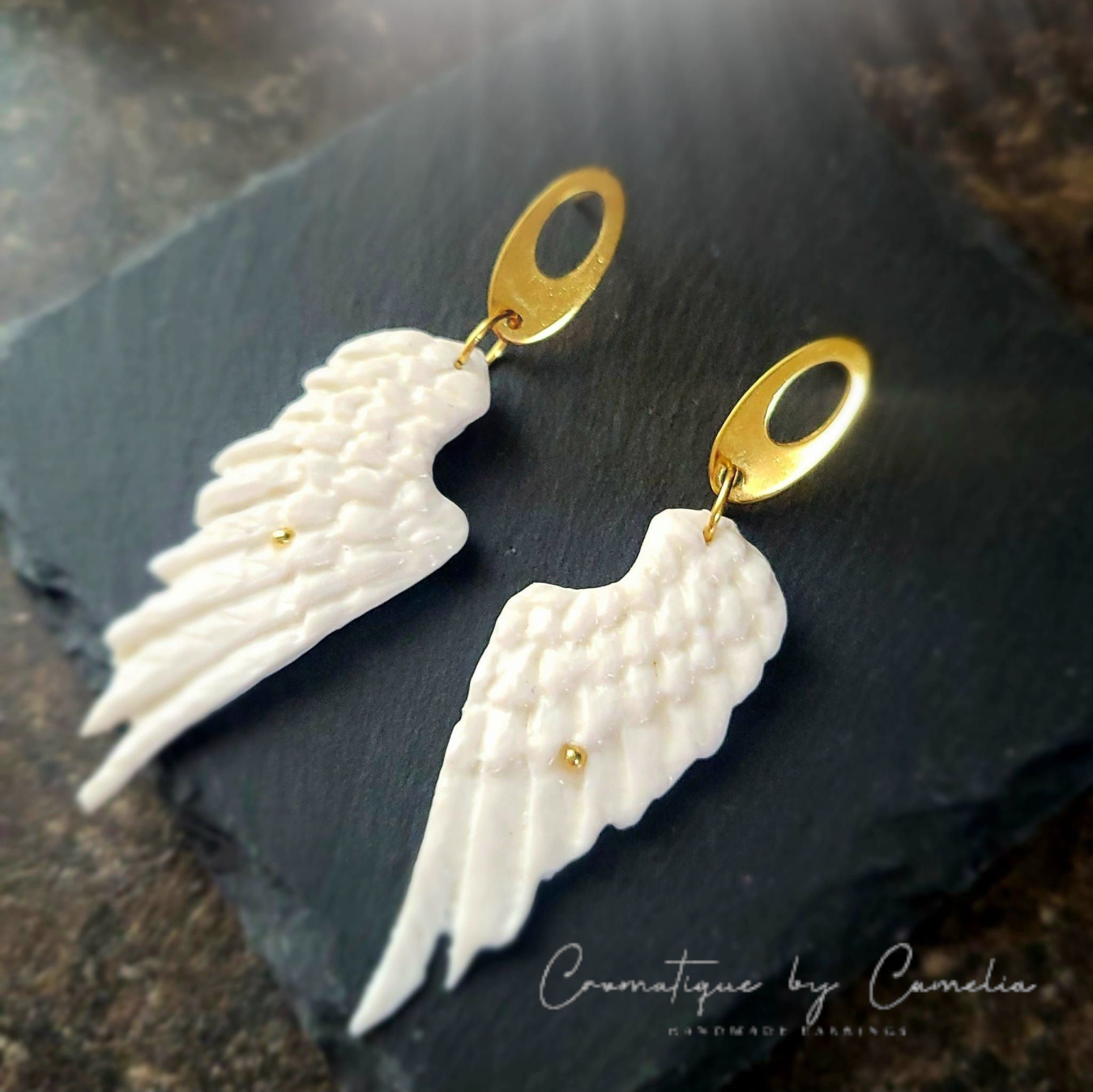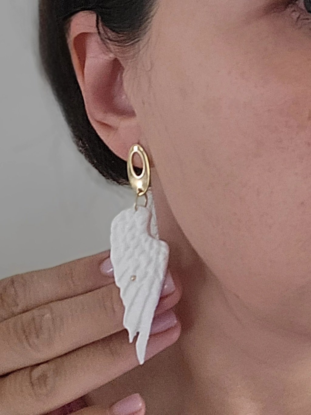 Acești cercei handmade sunt o adevărată declarație de rafinament și delicatețe. Realizați manual din lut polimeric, cerceii au forma grațioasă a unor aripi albe, simbol al purității, libertății și eleganței.