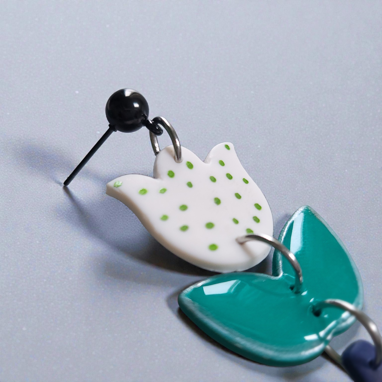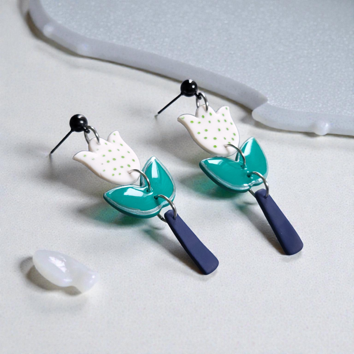 Cercei feminini și rafinați, realizați din elemente în formă de floare de lalea. Designul lor modern, dar delicat, îi face potriviți pentru pentru apariții casual-chic. Sistemul de prindere asigură confort la purtare.