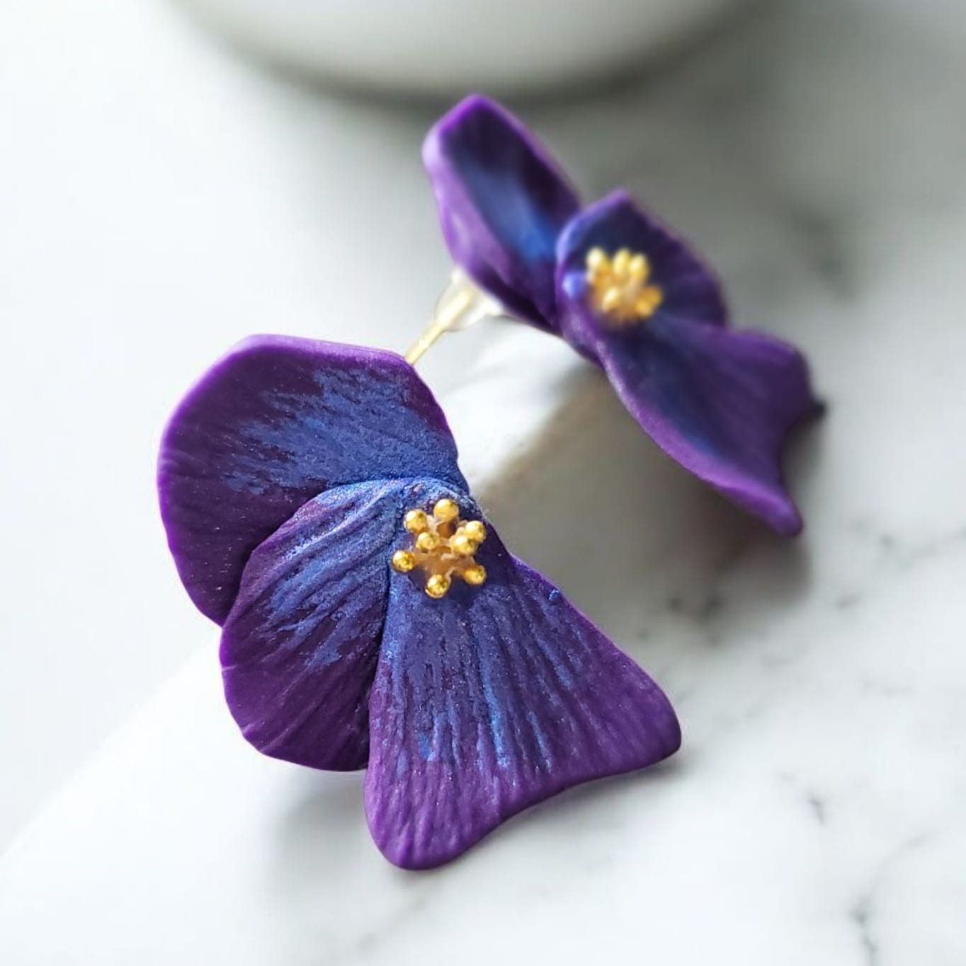 Rafinați și eleganți, cerceii Violete Regale sunt creați manual din lut polimeric, inspirați de frumusețea delicată a petalelor de violete. Nuanțele profunde de mov și albastru oferă un aer sofisticat și artistic fiecărei ținute. Ușori și confortabili, acești cercei adaugă o notă de natură și feminitate, fiind perfecți pentru evenimente speciale sau pentru a-ți înfrumuseța stilul de zi cu zi.