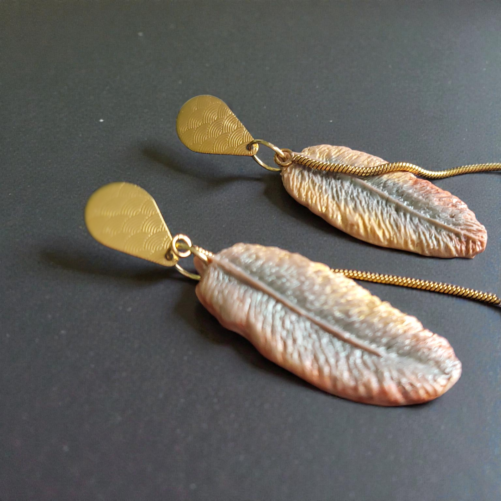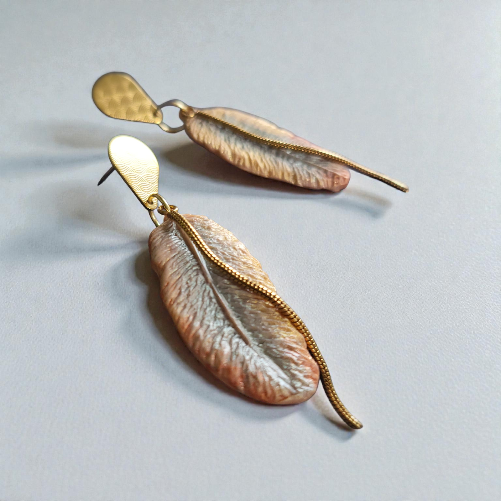 Cercei feminini și rafinați, realizați din elemente în formă de pene. Designul lor modern, dar delicat, îi face potriviți pentru pentru apariții casual-chic. Sistemul de prindere asigură confort la purtare.