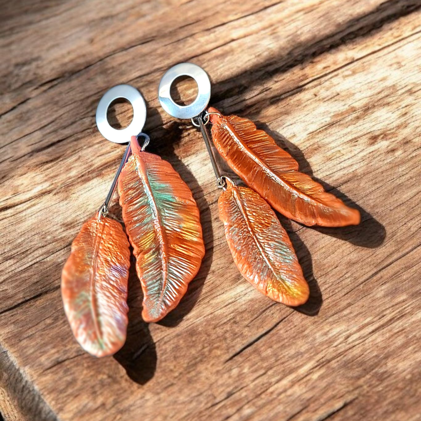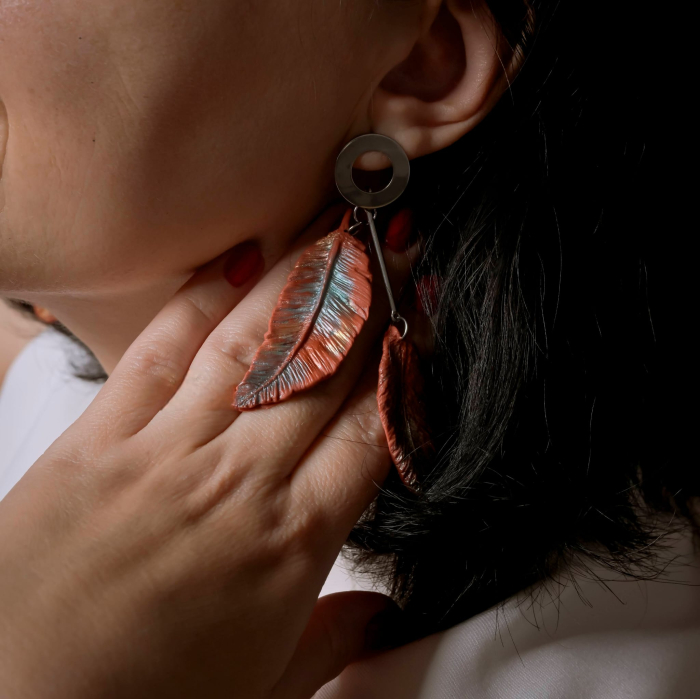Cerceii „Pene tomnatice” sunt realizați manual din lut polimeric, modelați cu finețe pentru a reda forma grațioasă a unei pene.