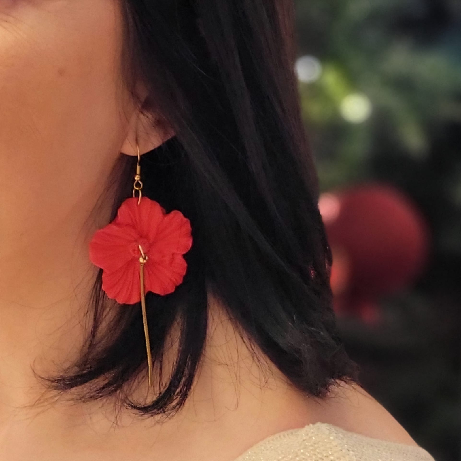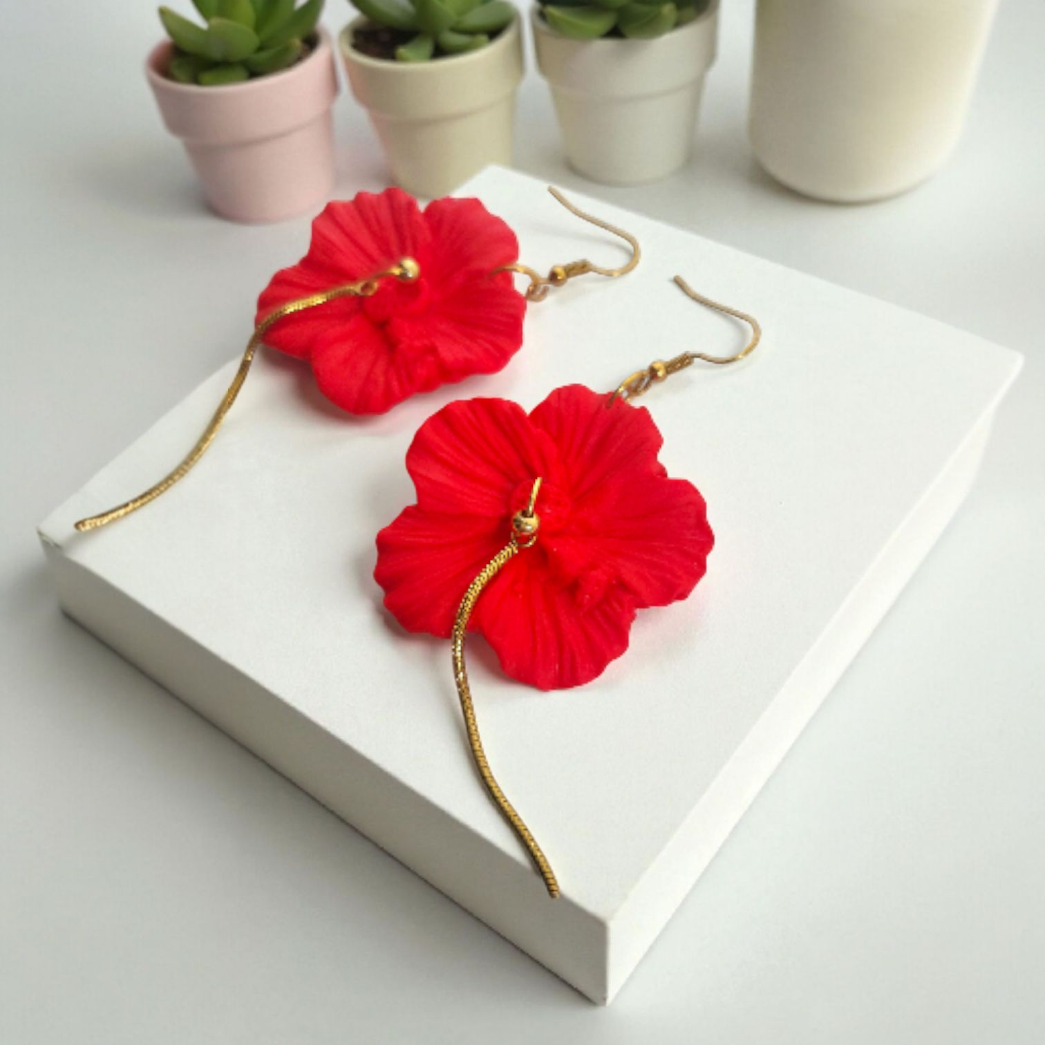 Inspiră-te din frumusețea naturii cu acești cercei handmade în formă de floare roșie, modelați manual din lut polimeric și accentuați cu detalii aurii din oțel inoxidabil. Textura delicată a petalelor și nuanța intensă de roșu oferă un aer feminin și vibrant, perfect pentru a adăuga culoare oricărei ținute.