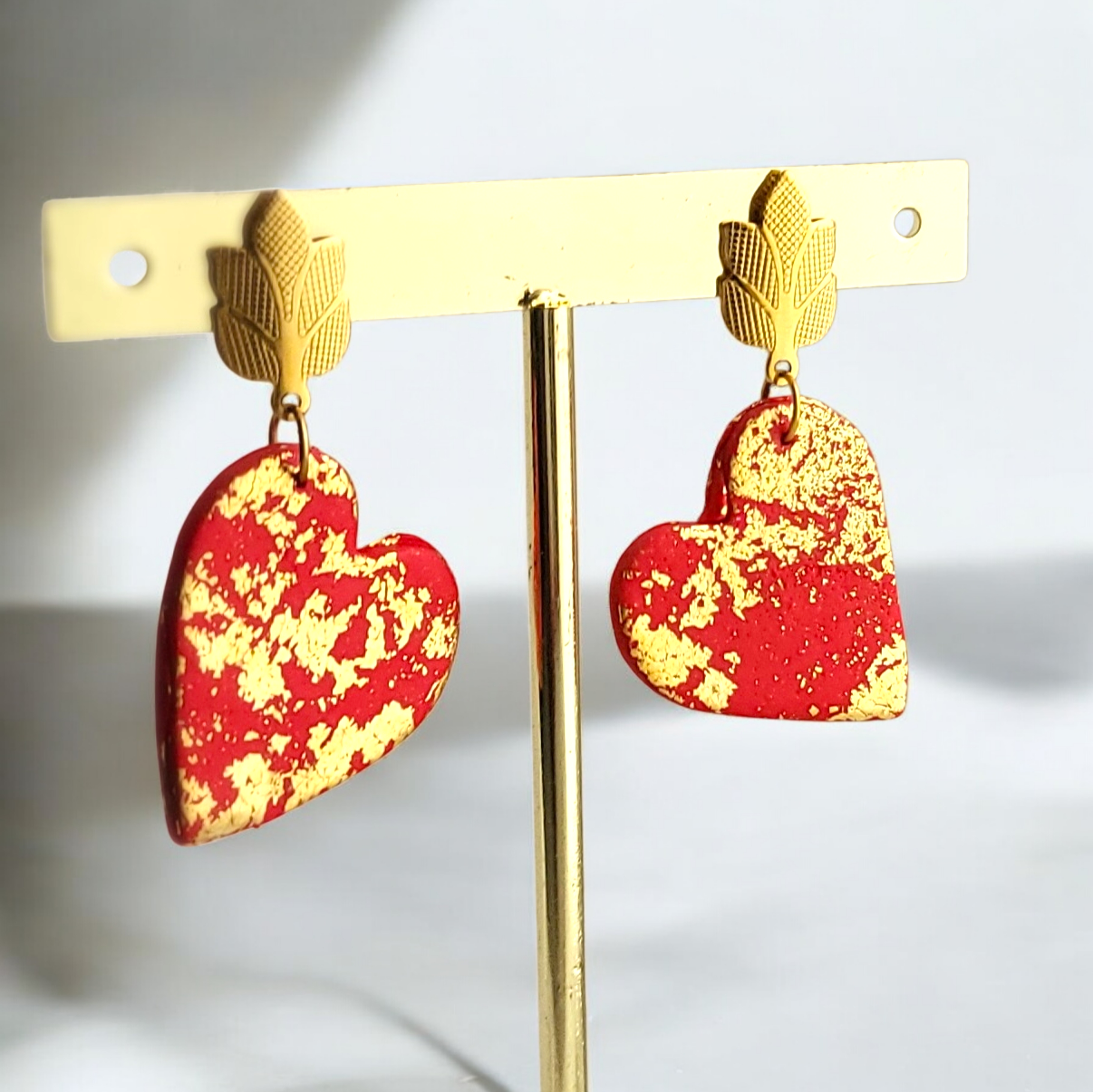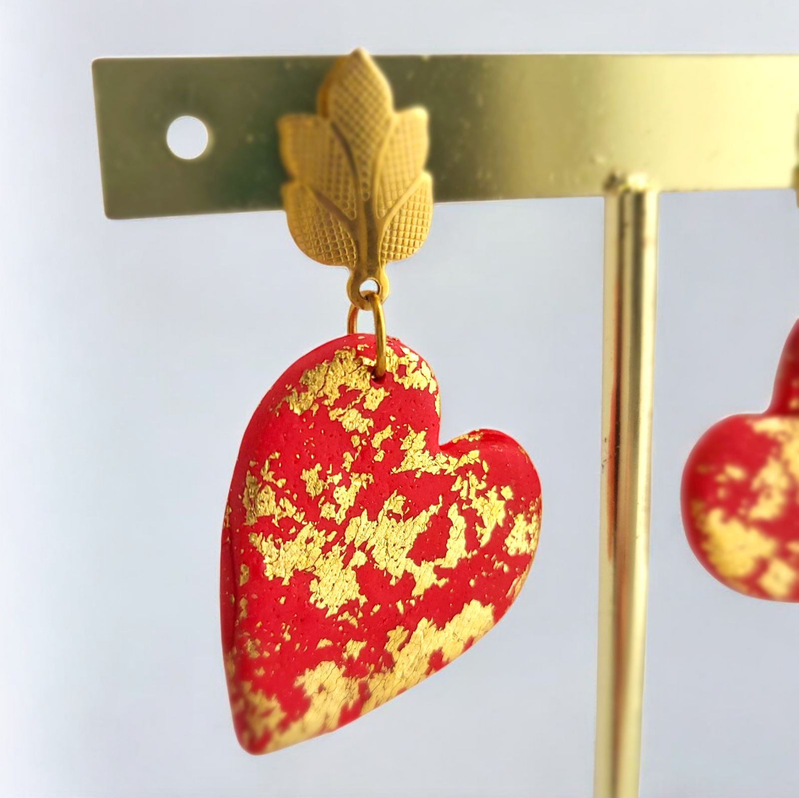Cercei eleganți cu inimi roșii și tortițe frunze