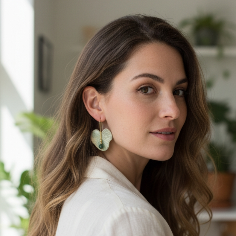 Alege să strălucești natural cu cerceii „Val de Lumină”, creați pentru femeile care iubesc eleganța fluidă și detaliile ce spun o poveste. Formele irizate, inspirate de mișcarea lină a apei, sunt puse în valoare de o piatră semiprețioasă zoizit, atent selecționată pentru frumusețea ei unică.